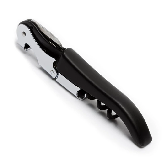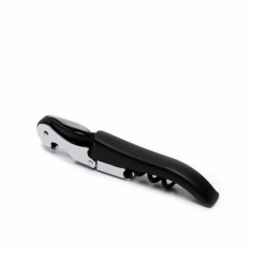 En mycket stabil servitörskorkskruv i metall. Modellen AC Waiter håller professionell standard och den smarta lösningen med två leder gör det enkelt att komma åt korken. Läckert utformad öppnare med korkskruv, kapsylöppnare och folieskärare i svart metall.