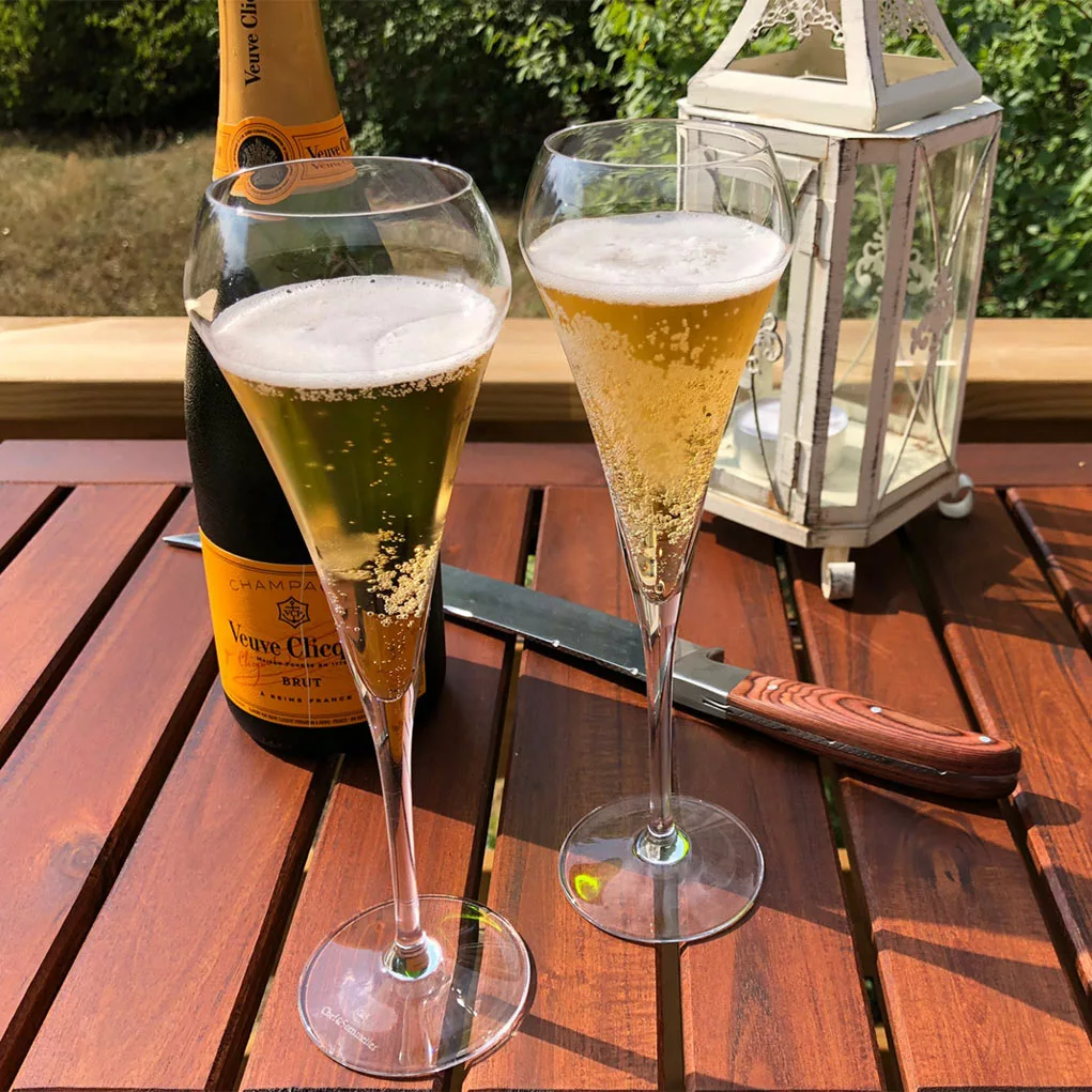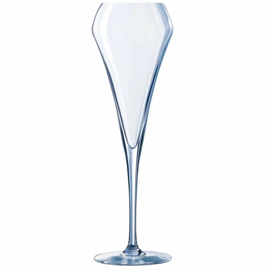 Detta eleganta champagneglas har den unika kvalitén att det både bibehåller kolsyran i det mousserande vinet, men även skapar en yra för aromerna att lyftas. Open Up Effervescent är ett stilrent designat vinglas för mousserande viner som Champagne, Cava, Prosecco och Crémant med mera. Den vackra designen i kombination med tåligheten i materialet Kwarx har gjort detta champagneglas till ett populärt alternativ för restauranger. Högkvalitativt och tilldragande.