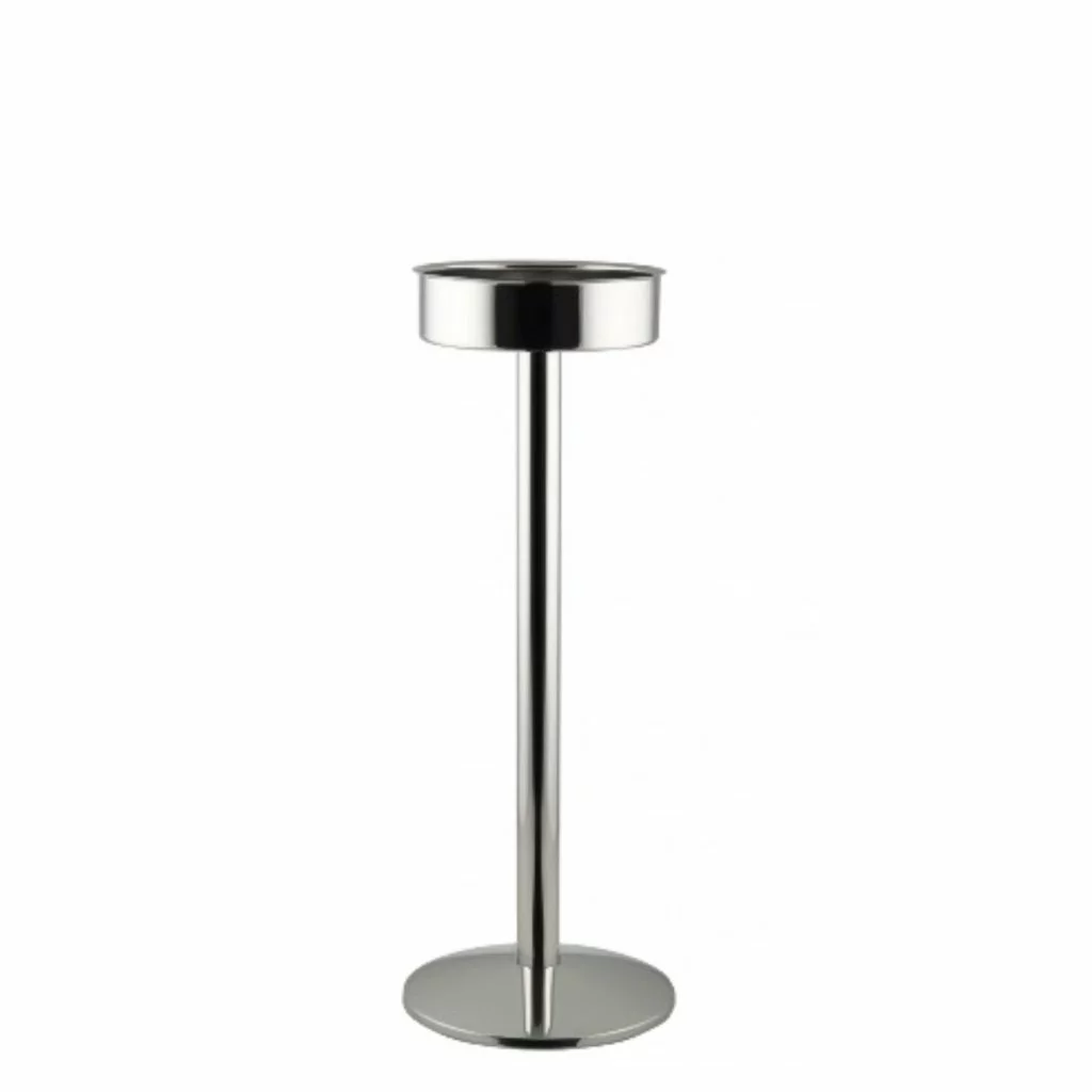 Ett stilrent ställ i metall för en elegant placering av vin- eller champagnekylare. Denna modell är anpassad för Dorres läckra vin- och champagnekylare, men lämpar sig bra till andra madonnor och vinkylare av mindre storlek.Perfekt för att skapa mer yta på serveringsbordet eller för att strategiskt placera ut champagneflaskorna vid minglet!