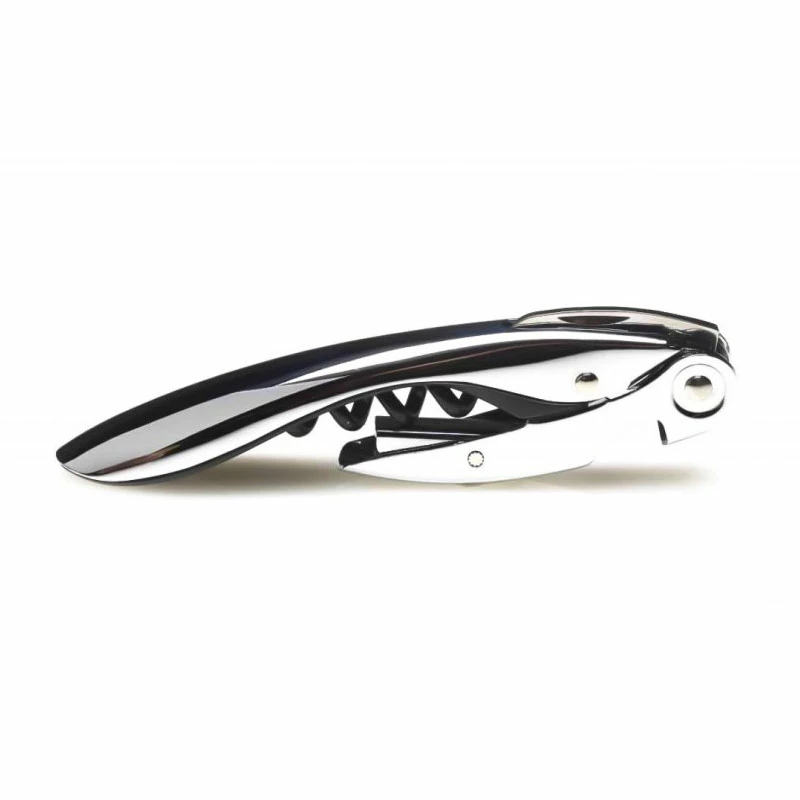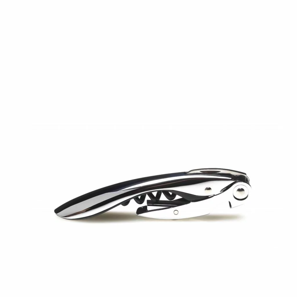 En mycket bra kromad vinöppnare som flitigt används i professionella sammanhang. High Tech servitörskorkskruv har en lätt böjd kropp som ökar greppvänligheten. Metalldelen har 2 st avstamp för att man med enkelhet kan ta stöd emot flaskan vid uppdragning av korken. Smidig rundad folieskärare. En mycket bra öppnare för både kork och kapsyl.