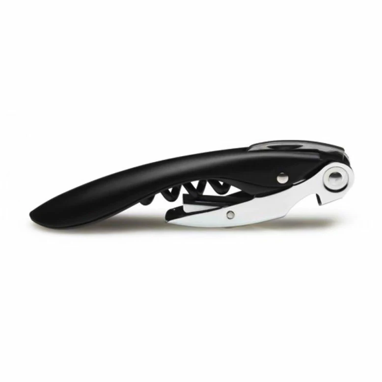 En mycket bra vinöppnare som flitigt används i professionella sammanhang. High Tech servitörskorkskruv har en lätt böjd kropp som ökar greppvänligheten. Metalldelen har 2 st avstamp för att man med enkelhet kan ta stöd emot flaskan vid uppdragning av korken. Smidig rundad folieskärare. En mycket bra öppnare för både kork och kapsyl.