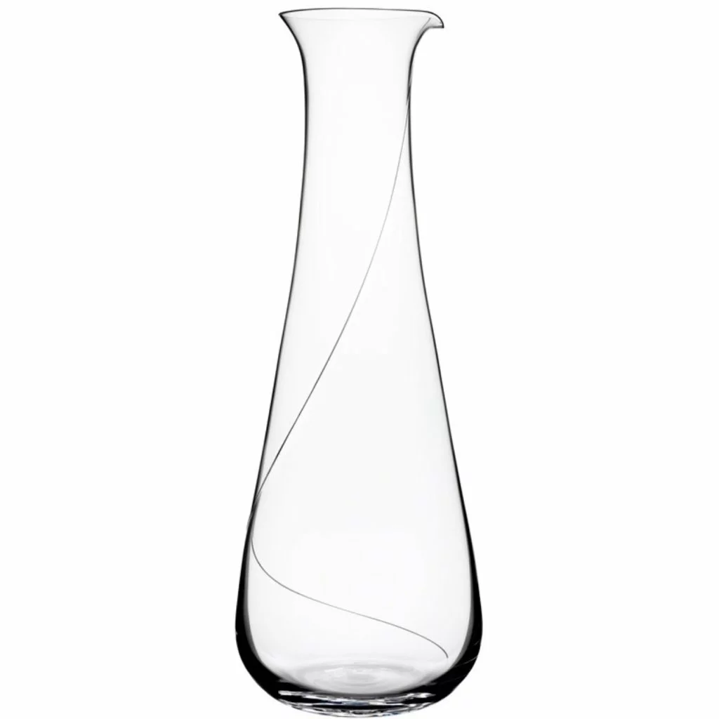 En vacker vinkaraff från Kosta Boda. Line Vinkaraff har en tunn glastråd som virar sig runt glaskroppen och skapar ett djup i designen. Den avlånga formen gör denna dekanterare lämplig till vita viner, eller viner som ej fordrar så mycket oxidation. Halsen är försedd med en pip upptill som underlättar vid servering.