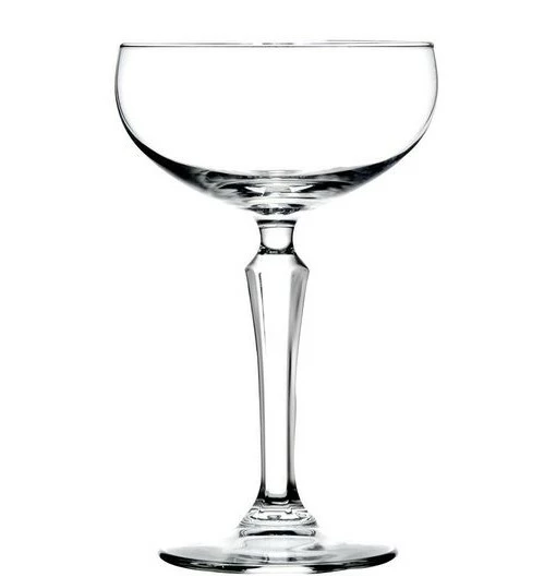 Ett läckert och nätt champagneglas från amerikanska Libbey. Speakeasy Coupe champagneglas är ett klassiskt utformat balkongglas för champagne och cocktails designat i Art Deco stil. Denna Coupe har en liten, elegant kupa och en relativt hög fot med sexkantiga slipning.