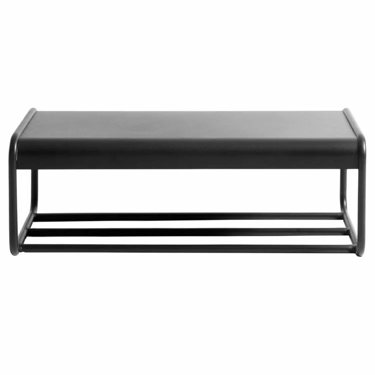 Nu finns det fler delar ur den fina serien Copenhagen av danska Muubs. Förutom den storsäljande spegeln finns nu en hylla, bänk samt en pall. Hyllan är gjord i svartmålat järn och passar perfekt i hallen. Med sina två nivåer får du mycket plats för förvaring på liten yta. Använd den övre delen som ett hyllplan med förvaringskorgar och häng galgar eller krokar på det undre planet. En minimalistisk hylla för den stilsäkra!