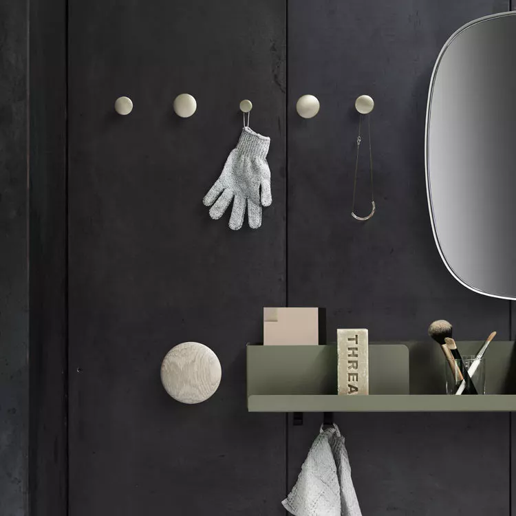 Dots metall finns i ett flertal olika fäger och är en mindre variant på de klassiska trä dotsen från Muuto. Går även att använda som knoppar på tex en byrå.
