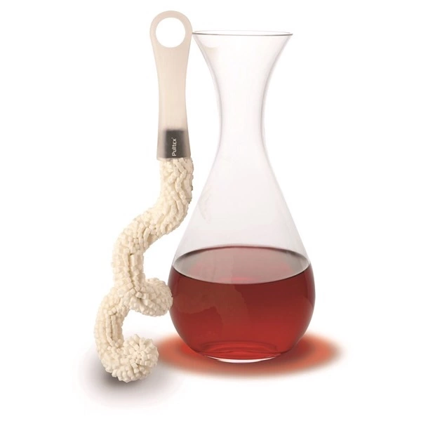 Den vackert designade vinkaraffen Adonis från Pulltex har en elegant hög hals och en relativt liten kropp som lämpar sig bra främst för vita viner. Den praktiska karaffdiskborsten är ergonomiskt utformad och kommer med lätthet åt i alla vrår i karaffen men går naturligtvis utmärkt att använda även till andra karaffer och vinglas.