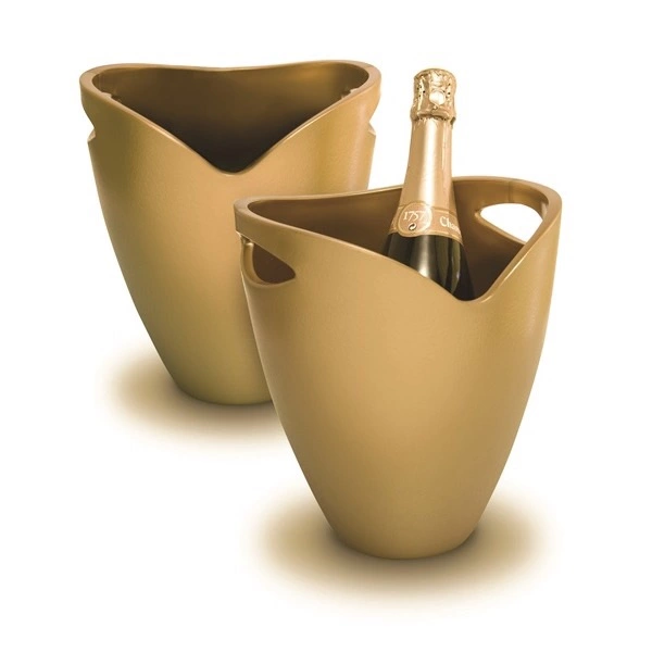 En stilig ishink i färgen Guld från Pulltex. Denna vinkylare håller ditt vin eller champagne kallt och är tillverkad av det lätta materialet akrylplast. En greppvänlig kylare som försetts med två handtag vilket underlättar hanteringen och fördjupningen på ena sidan stabiliserar vinflaskan och gör tömning av isvatten enkelt. Tål maskindisk.