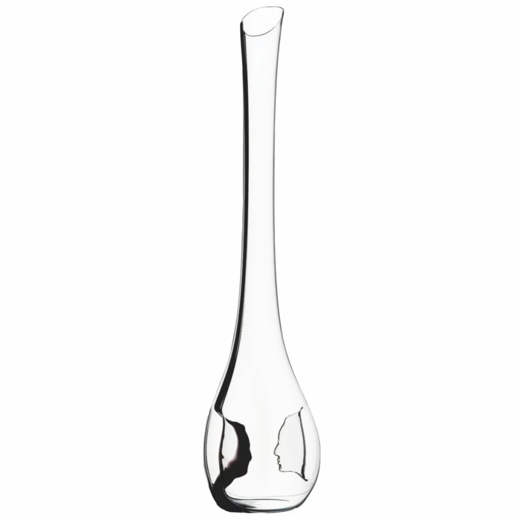 En mycket läcker Vinkaraff från mästarna på Riedel. Black Tie Face to Face Vinkaraff har en mycket lång hals som pryds av en smal svart linje. I själva karaffens kropp har man på motsatt sida format in två silhuetter av ansikten i som möter varandra i karaffen. Denna dekanterare är minst lika mycket ett konstverk som en Vinkaraff. Mycket vackert.