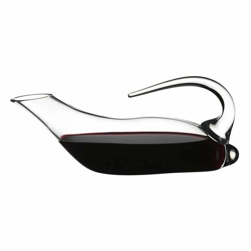 En riktigt exklusiv dekanterare i ’liggande’ format. Den stiliga vinkaraffen Duck från Riedel är handblåst och av högsta kvalité. Duck är en låg karaff med ett handtag som underlättar vid servering av vin. Formen påminner till viss del om den av en gås, vilket karaffen möjligen fått sitt namn ifrån.