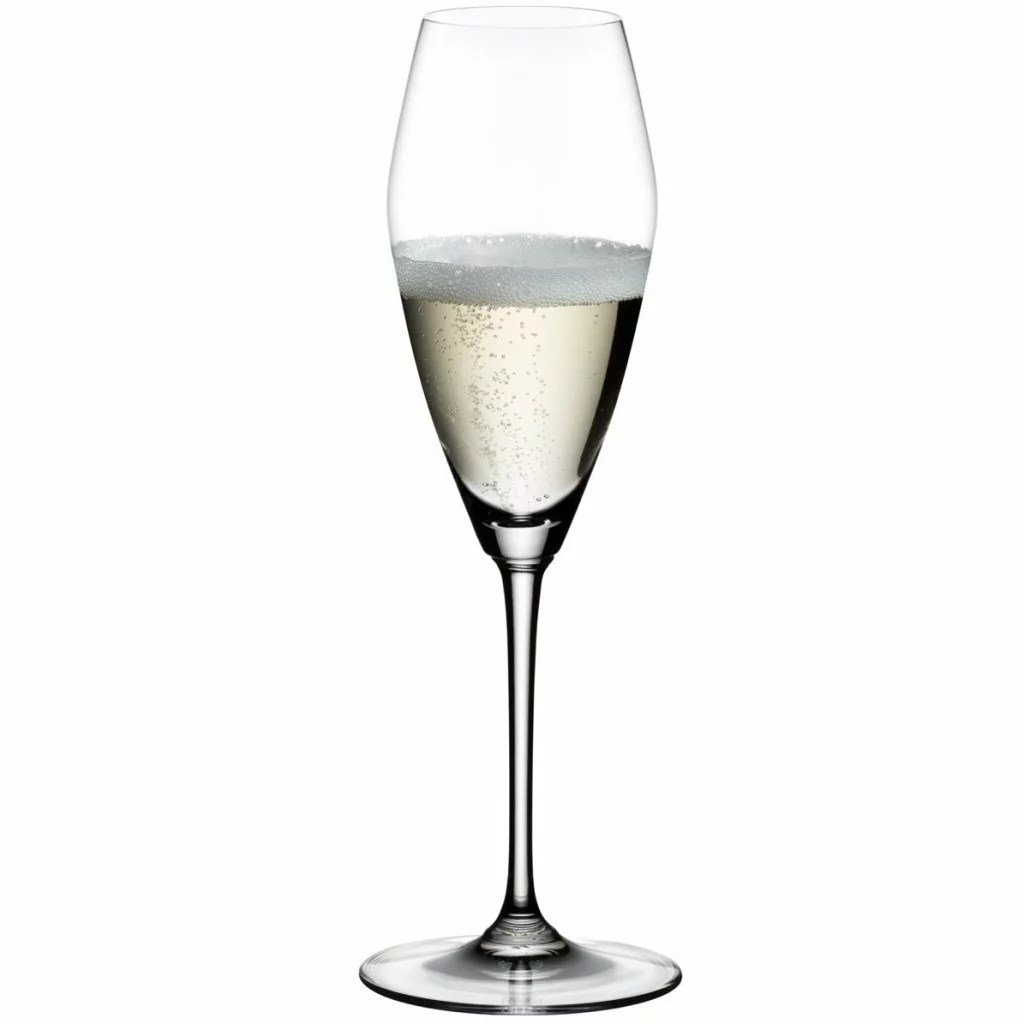Med Vinum Extreme Champagne har Riedel tagit det ett steg längre för att möta smakerna i riktigt stora mousserande viner. Kupan är långsmal med en hög vändpunkt vilket bevarar kolsyran och lyfter effektivt de friska, mineraliga och lätt brödiga tonerna som ofta återfinns i champagne och andra mousserande viner. Botten på glasets kropp är specilbehandlad för att frigöra kolsyra. Öppningen är mindre vilket bevarar aromerna i glaset. Det är en njutning att dricka Champagne eller Crémant ur Vinum Extreme Champagne.