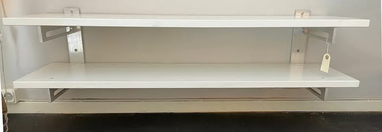 Anmärkningar: Utställningsexemplar, repig och skadad vid väggfästet på en den övre hyllan