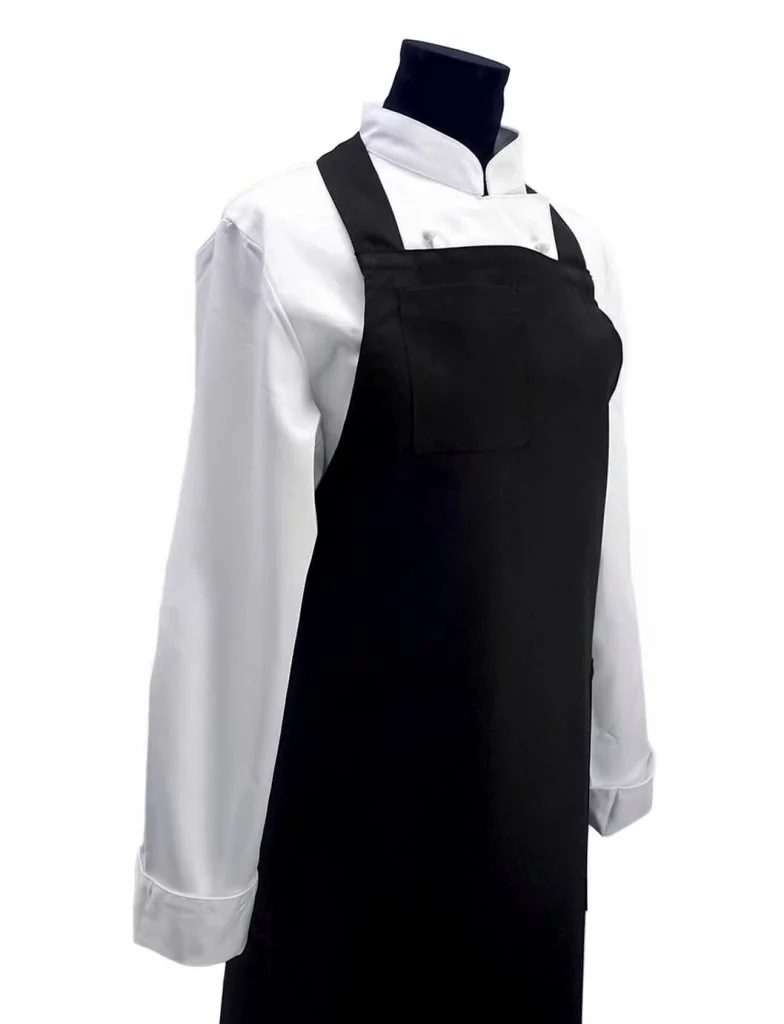 Elegant serveringsförkläde i svart färg med knappförsedd rem. Sommelier är en något lyxigare variant av förkläde och har en ficka upptill samt ett band med flera knappar för ställbar längd. Förkläde Sommelier är ett elegant förkläde i restaurangklass som passar perfekt till hemmabaren, köket eller till vinprovningen. Hög kvalité och tillverkat i slittåligt material.