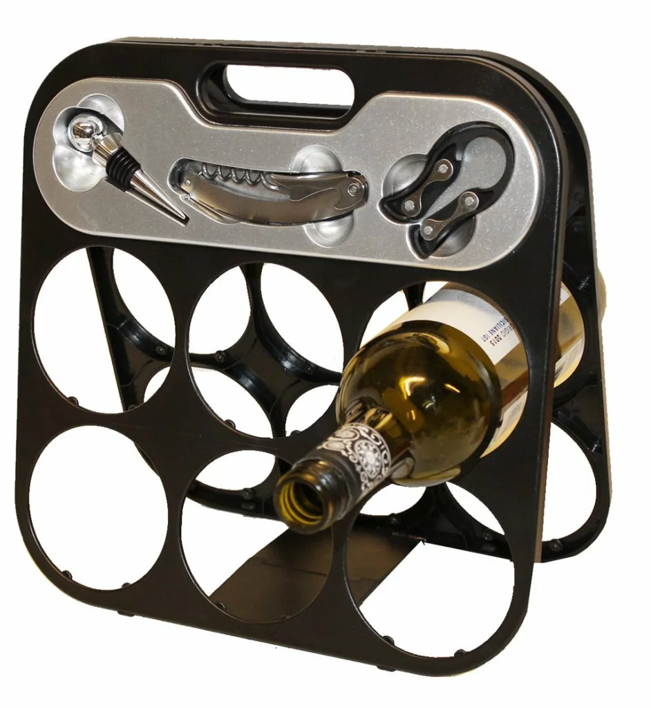 Vinstället rymmer 6 flaskor och har ett greppvänligt handtag. Allt du behöver för att öppna och förvara ditt vin på bästa sätt.